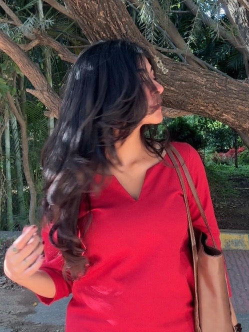 Amara Red Cotton Straight Kurta Set
