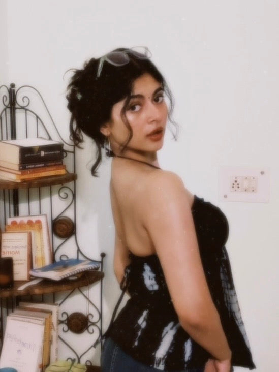 Raat ki Rani: Black Kalamkari Criss-Cross Top