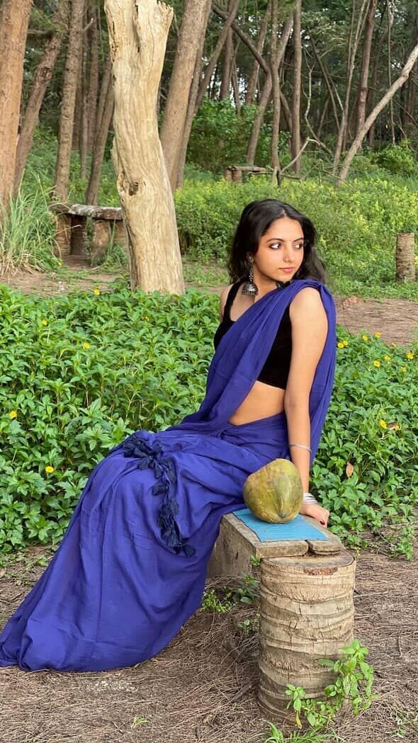 Rayna Blue Handwoven Mul Mul Cotton Saree With Tassels